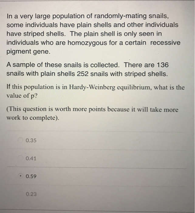 Solved In A Very Large Population Of Randomly Mating Snails Chegg Com